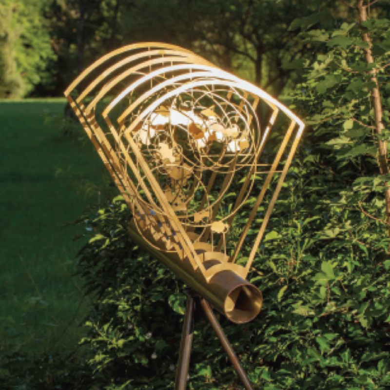 The installation connects Einstein's general theory of relativity, according to which space, time, and gravity are interwoven in the “spacetime fabric” of the universe, with contemporary concepts and theoretical quantum physics.